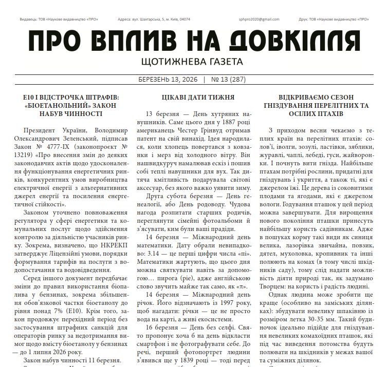Випуск № 13 (287) від 13 березня 2026 року.