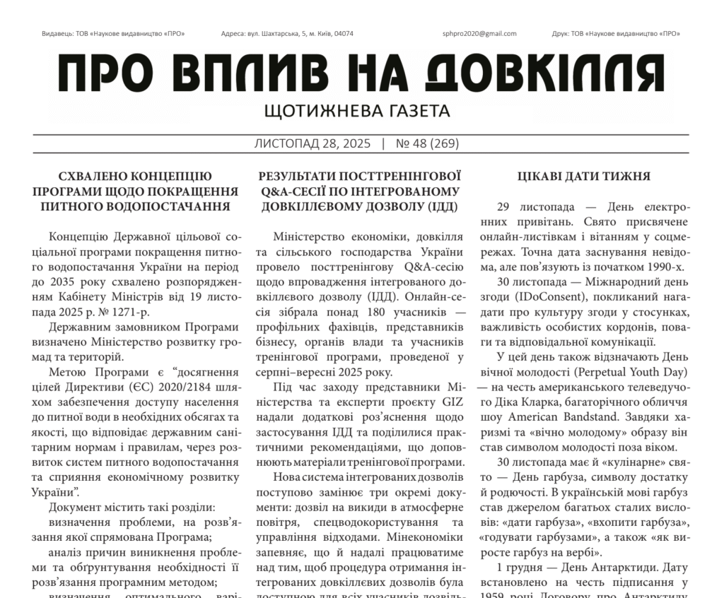 Вийшов друком черговий, 269 випуск газети “Про вплив на довкілля”