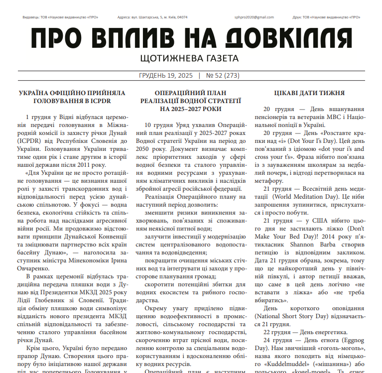 Випуск №52 (273) від 19.12.2025